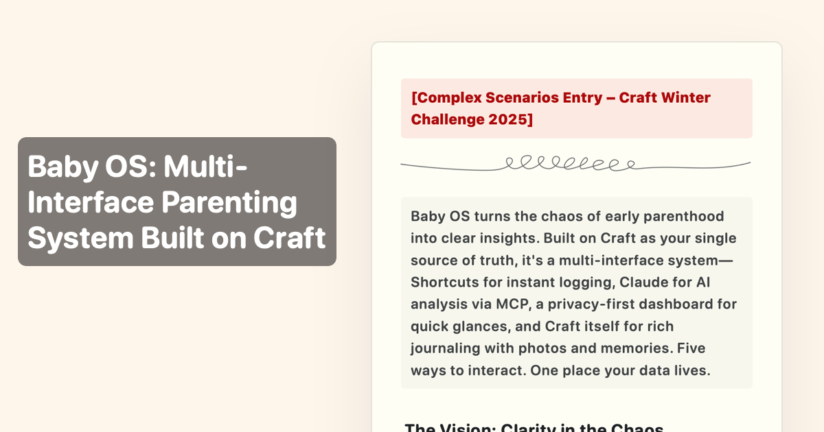 Multi-interface baby tracker. Log feedings and sleep via Shortcuts, analyze patterns with Claude.