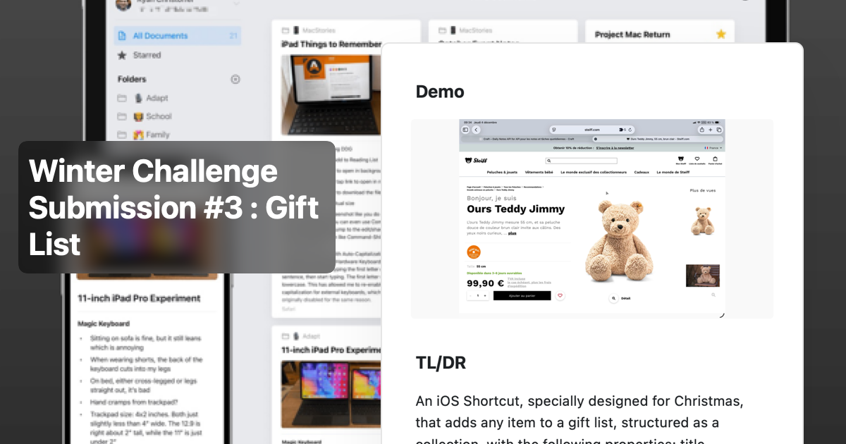 Gift tracking shortcut. Log gifts given/received with recipients, occasions, and URLs in Craft.
