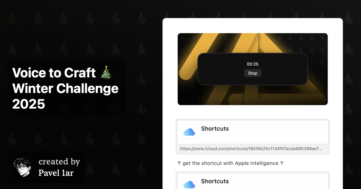 Record voice → transcribe → generate smart title → create note. All on-device with Apple Intelligence.