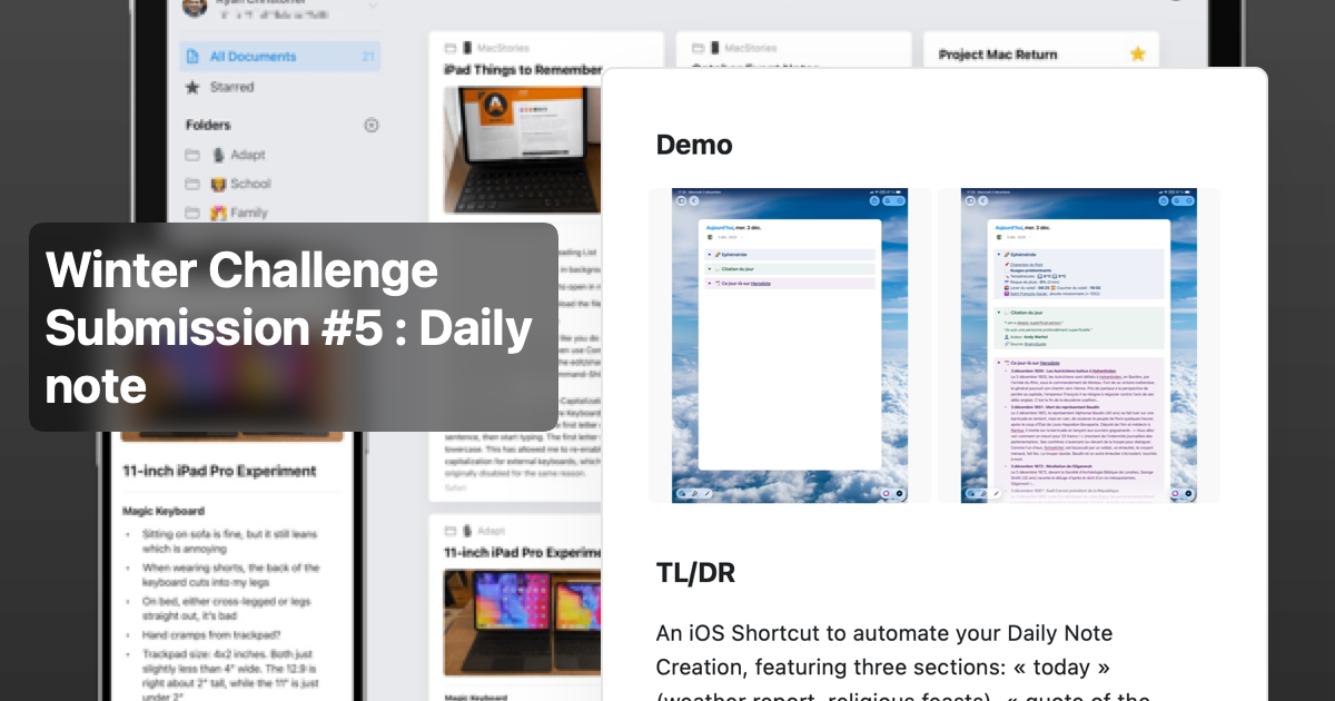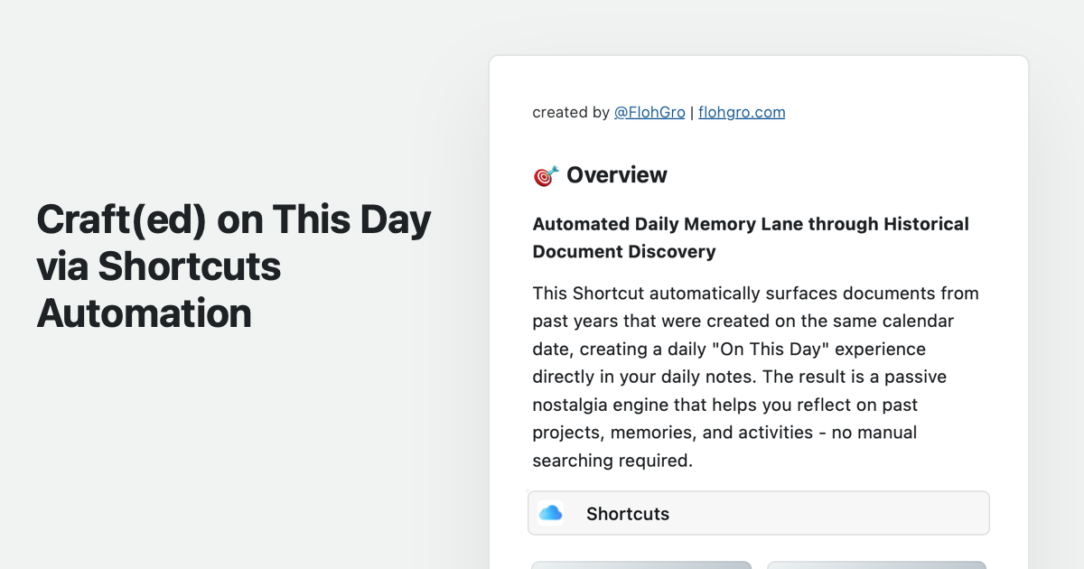 Daily Note automation shortcut. Weather, quote of the day, and historical events added each morning.
