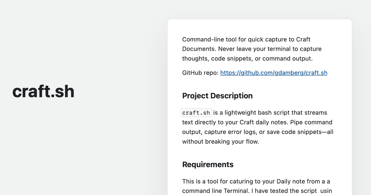 Command-line capture to Craft. Pipe terminal output, code snippets, or thoughts without leaving CLI.