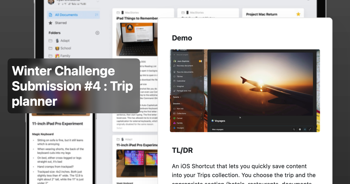 Save trip content to your Craft collection via shortcut. Hotels, restaurants, tasks organized by section.