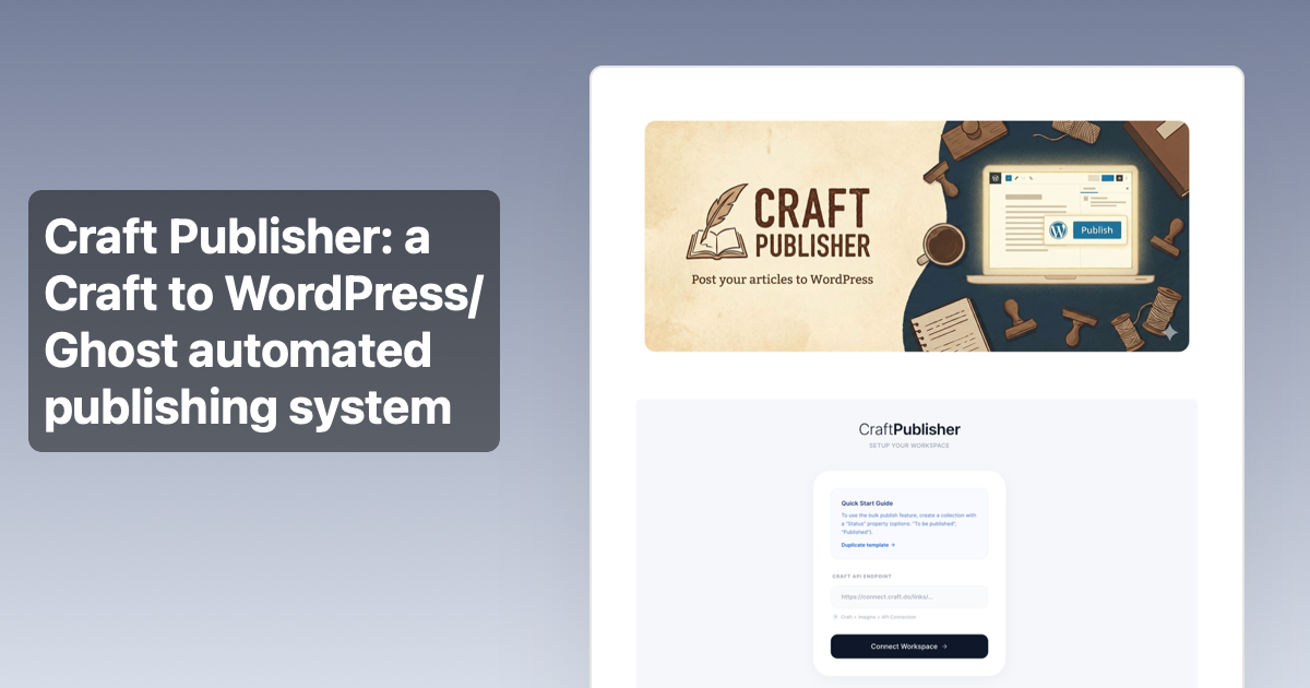Publish Craft pages to WordPress or Ghost in one click. Manual or fully automated sync.