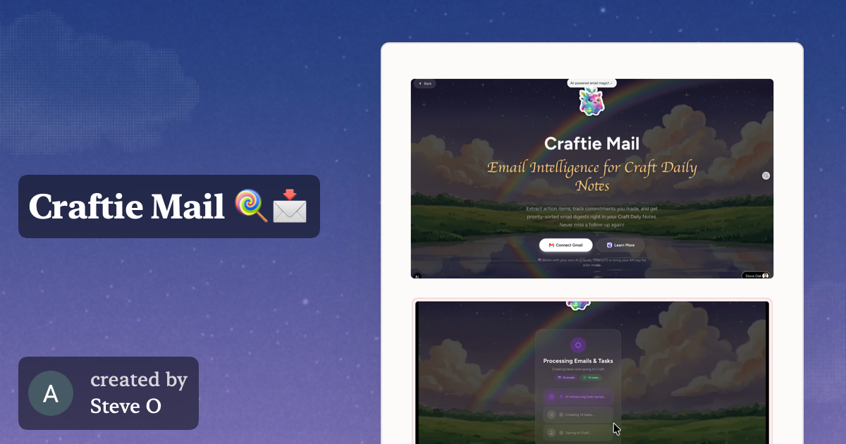 Gmail to Craft in one click. Extract tasks and summaries from emails into Daily Notes.