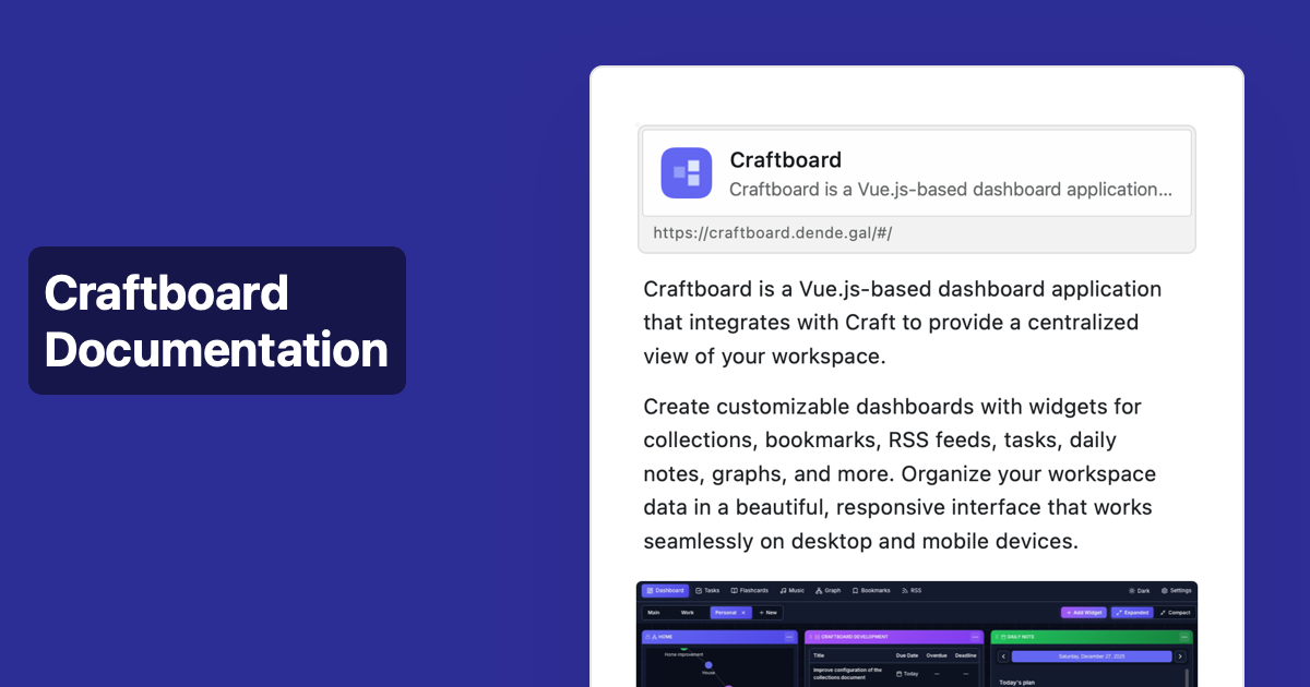 Open-source dashboard integrating music, flashcards, and more. All your Craft needs in one place.