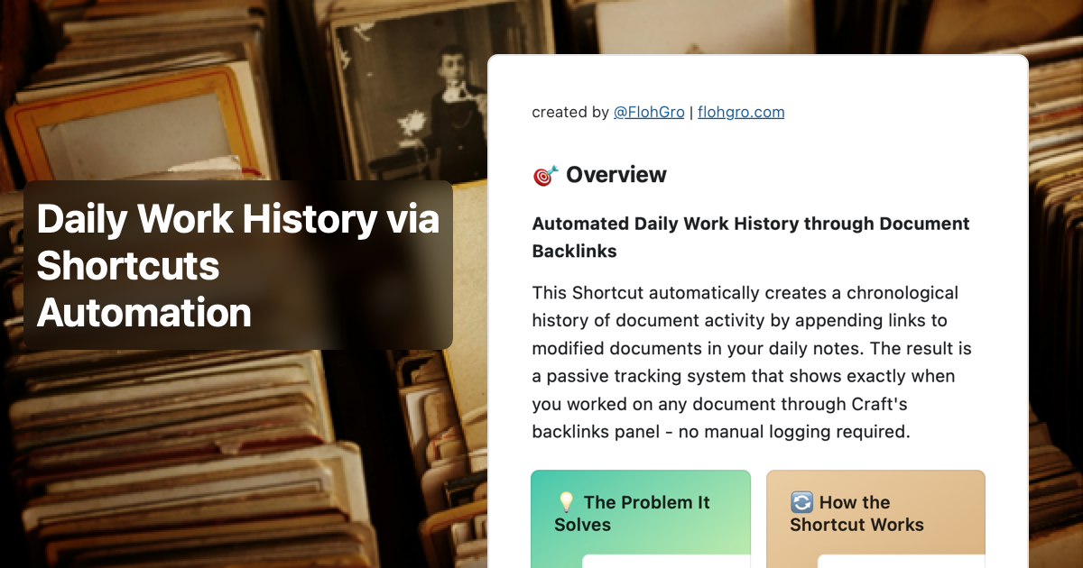Auto-append today's modified documents to your Daily Note. Build work history via backlinks.