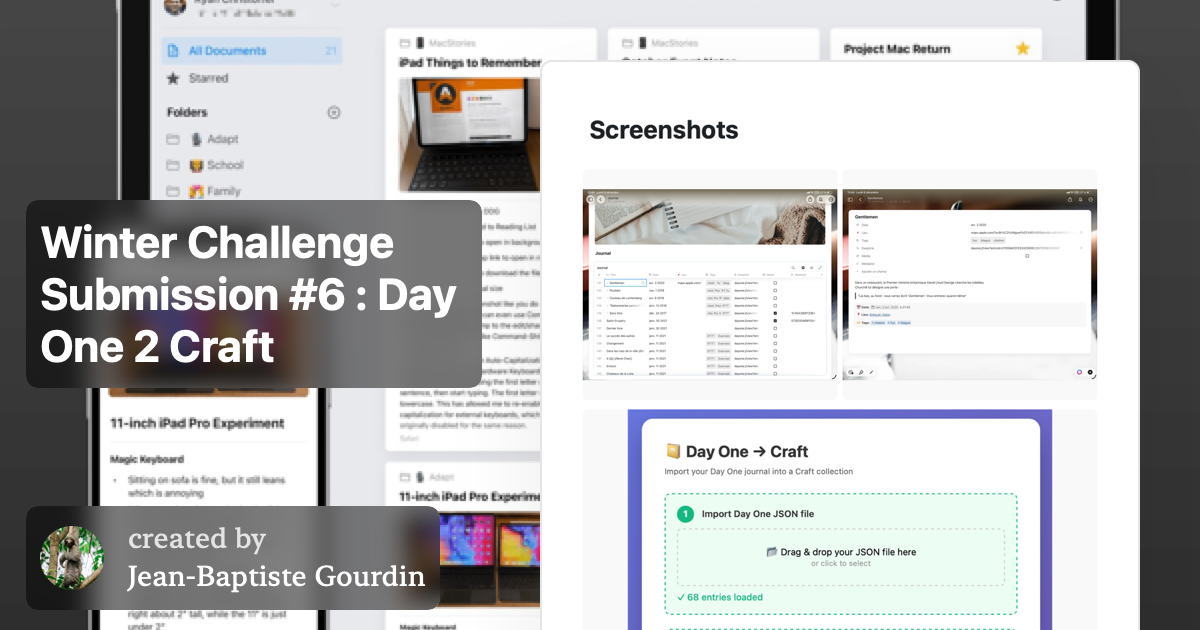 Import Day One journals to Craft collections. Preserves date, location, tags, and deep links.