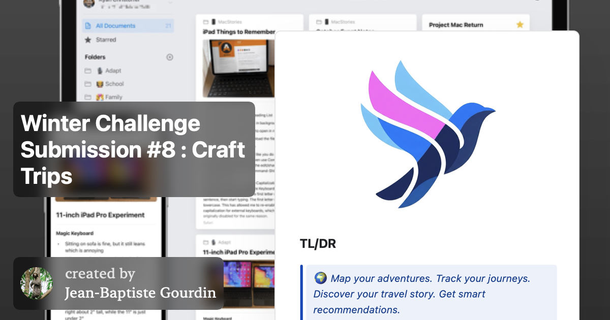 Interactive travel companion. Map, timeline, and stats dashboard synced with your Craft trips collection.