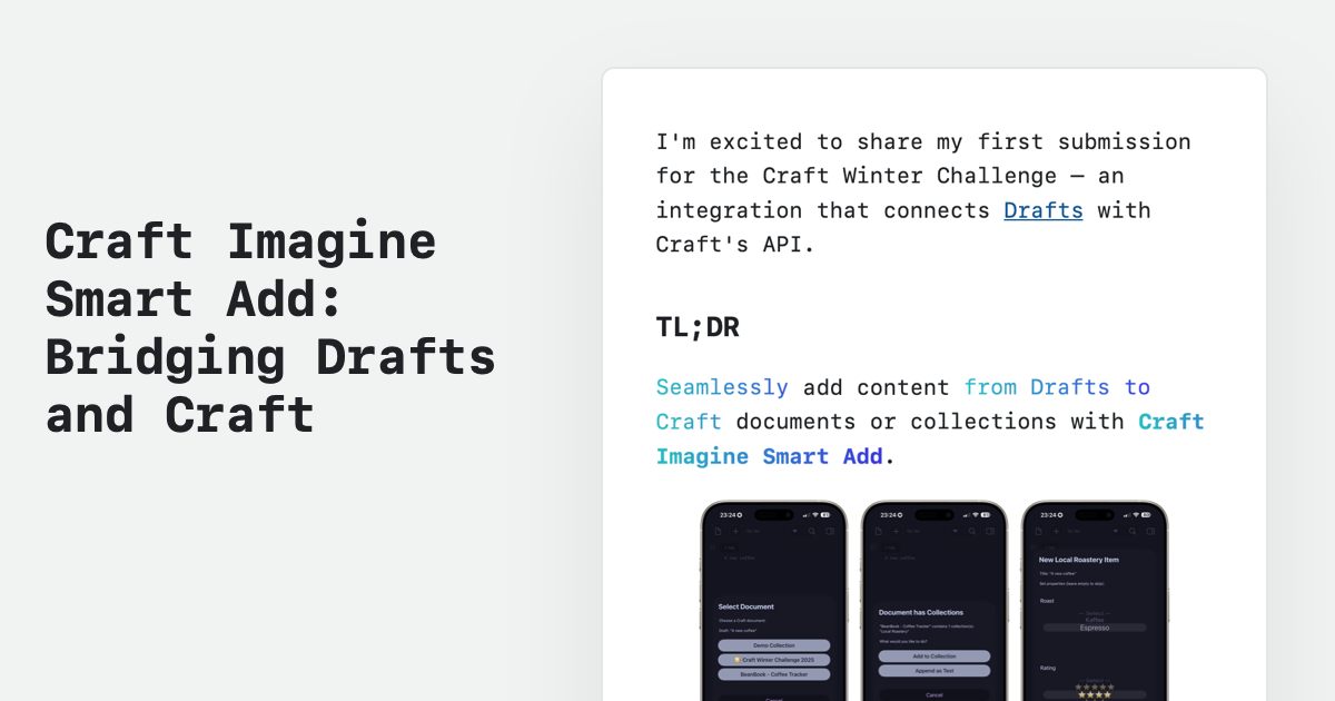 Imagine adding to Craft and Claude executes it. No need to specify folders or collections.