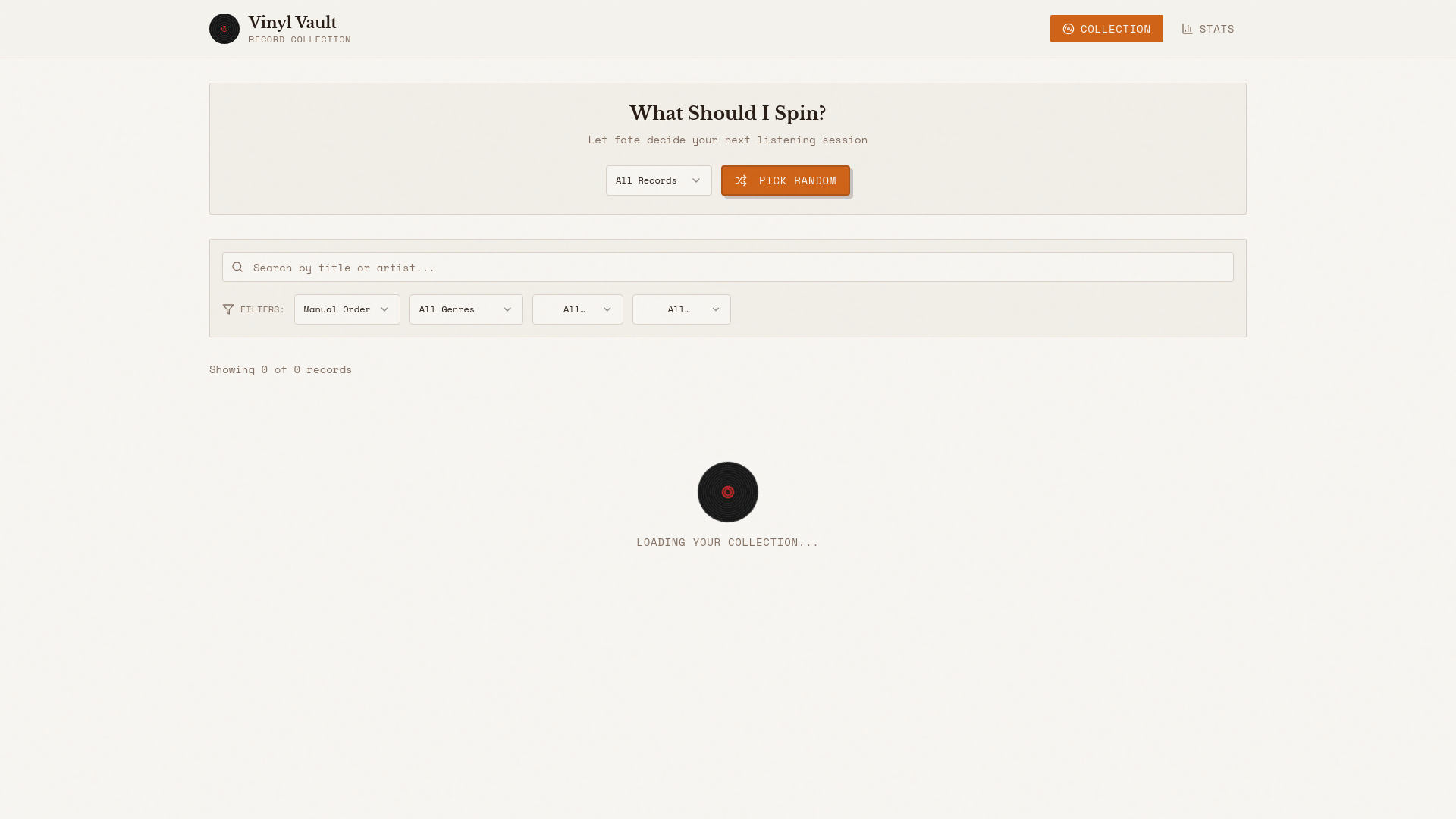 Vinyl records dashboard. Browse collection, get recommendations, log listens. Syncs with Apple Music.